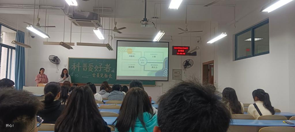 为了提高协会干部与干事的工作配合程度,增强干部干事与协会会员的密切联系,共同助力科普爱好者协会向好发展。第一届科普爱好者协会会员见面会于2023年3月9日下午四点在弘德楼13202顺利举行。参加本次活动的人员有协会会长、副会长、各部门干部和干事,以及协会会员。
