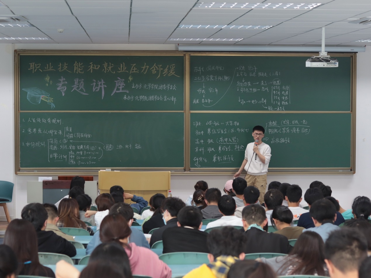 为了帮助我院同学们了解就业前景和考研形势,也能更好地在舒缓心理压力方面助同学们一臂之力,由太阳成tyc234cc团委学生会主办、生活与心理部承办的“千校万岗·启航青春”主题讲座活动于5月11日下午四点在求是楼321进行。
