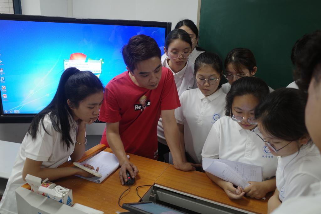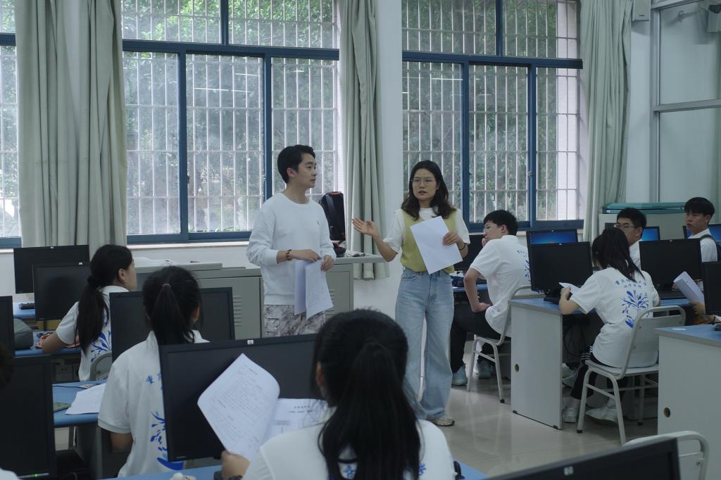 进行了具体流程的介绍之后,分组培训正式拉开序幕。志愿者们分为三组。第一组的志愿者在微格教室进行教学设备操作培训。老师在微格教室现场指导同学们如何拷贝教案和录像,保证录课过程能够顺利进行。第二组是送材料、评分、计时小组的培训,在这过程中,陈霞老师对人员的安排进行了一定的调配,不断完善以保证比赛过程的完整性。第三组是引导小组和打印资料小组的培训同时第三小组在实地考察比赛路线,整理出了效果更好的方案,极大提高引导效率。