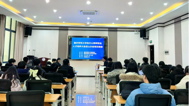 1月13日下午,学校地方公费师范生人才培养大会巫山分会场交流会在我院召开。学院执行院长王燚、党委副书记蒋红、副院长周功兵以及优师计划本科生指导教师参加了会议。会议还邀请了巫山县人社局干部席睿馨、教委干部吴瑶玲一同参加。我校定向巫山的2022级、2023级和2024级60余名公费师范生参加了交流会。交流会由副院长周功兵主持。