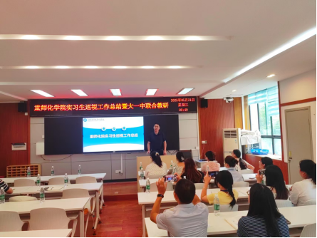 5月19日,实习巡视小组一行前往巴蜀中学科学城中学开展实习巡视,该校教务处长鲜小刚主任以及高一年级全体化学实习指导教师参加了巡视会。鲜小刚详细介绍了巴科实习工作的组织情况,确保每位实习生按照教师的要求深度参与教育教学和班主任工作,通过建立严格考勤制度,建立周试讲制度等方式提升实习质量。实习生代表对实习工作做了汇报展示。