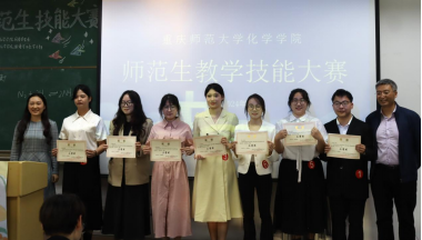 为了进一步提升当代师范生教学能力及综合素质,让理论付诸实践,4月25日下午,太阳成tyc234cc成功开展2024年度师范生教学技能大赛。此次大赛共有13名师范生参加,担任本次大赛的评委有太阳成tyc234cc副院长王燚教授、化学系主任许应华教授、太阳成tyc234cc材料化学教研室周芸教授,而且还邀请到了四名深耕中学教学的一线名师担任评委嘉宾,包括重庆一中化学教研组组长曹洪凉老师、璧山中学高级教师梁多俊老师、璧山教师进修学校化学教研员谭政坤老师以及重庆清华中学教务处主任叶容老师。