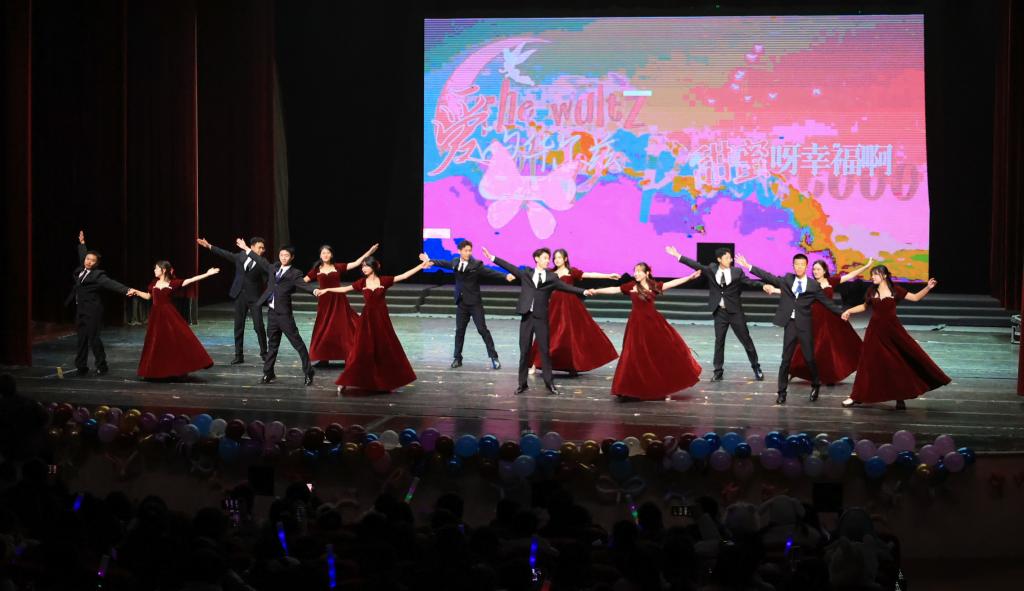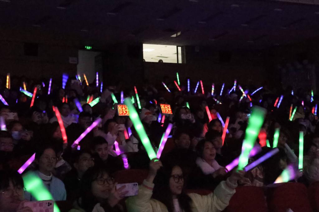 氛围逐渐热烈,晚会也迎来了第三篇章“群‘新’灿烂,未来可期”。活泼明朗的吉他声伴着轻快的歌声,宛如风吹麦浪,不禁让同学们流连其中,回归那无忧无虑的童年。研究生学姐学长们更是将清澈的嗓音诉说着星不远,梦不远,只要踮起脚尖,这便是命运改变的瞬间。时间总是匆匆流逝,在最后的节目中,一句相亲相爱将所有人的心凝聚在一起,在欢笑中晚会圆满的结束了!