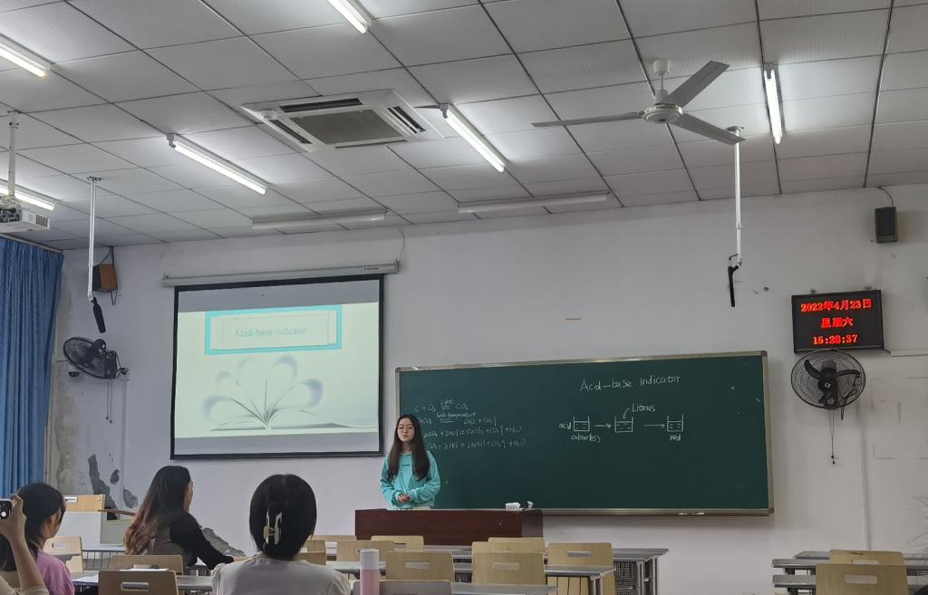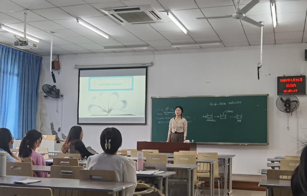 指导伊始,吴娅妮老师对现今中国双语教学现状(以重庆市双语教学情况为主)进行了仔细地分析并对第一届中学化学教学双语微课大赛进行了全面的解读。吴老师还结合自身教学经历让同学们更进一步了解本次双语微课大赛。紧接着就是参赛选手们精彩的双语微课展示。