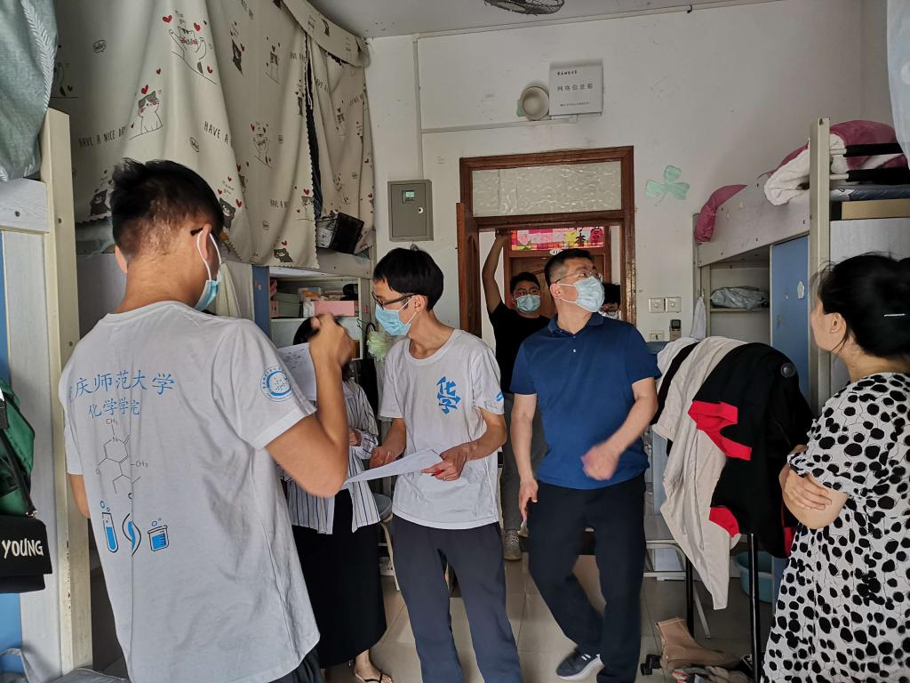 3月16日,学院党委书记卢洪英,副院长刘玺,党委副书记蒋红,副院长王燚以及全体辅导员、班主任、研究生班主任走访学生寝室,提醒同学们疫情之下不能大意,一定要遵守学校学院关于防疫的各项规定,做好个人防护;同时,学院线上教学工作顺利开展,在寝室上网课,也必须对自己严格要求,确保学习的顺利进行;针对同学们尤其是毕业年级遇到关于就业、考研以及毕业的各种问题,学院领导老师们都给予一一解答。关键时刻,学院上下一心,携手同行,必将迎来春暖花开。