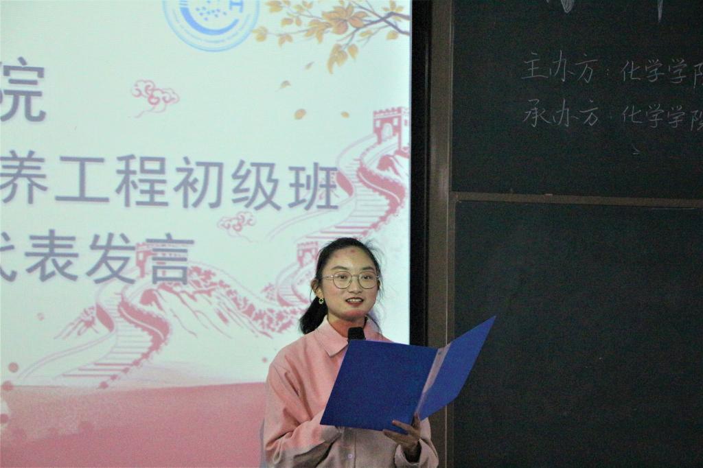 活动伊始,跟随视频,回忆了近年来太阳成tyc234cc青马班的发展历程,让各位同学更加了解青马班。接下来,于斌老师为第十二期的九位优秀学员颁发奖状。随后第十二期青马班优秀学员代表陈雨上台发言,并讲述自己在青马班的心得感悟。她讲到进入青马班是一次难得的学习交流、锻炼和提高的机会,希望新学员能在此过程中把握机会,明确目标;提高认识,严守纪律,遵守各项制度;学以致用,理论联系实际,提高工作效能。