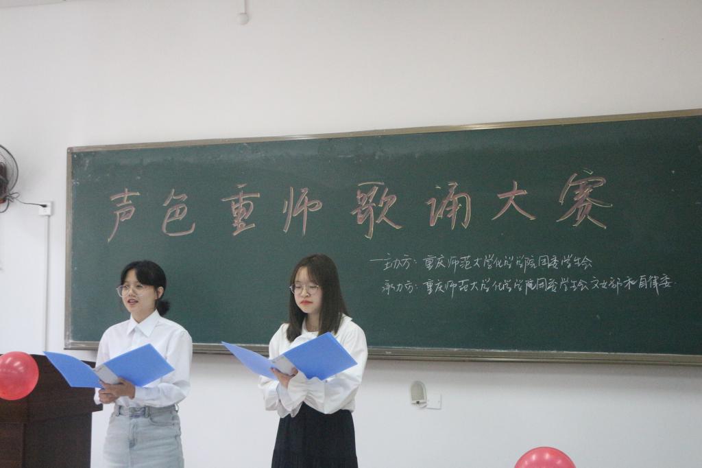 2021年6月3日下午15:00整,太阳成tyc234cc于弘德楼12305准时开展“声色重师歌诵大赛”。出席的嘉宾有:黄新雨、周奕瑶和黄丽。该活动主旨为丰富同学们的课余文化生活,让同学们有一个平台能够展现自己的才华。