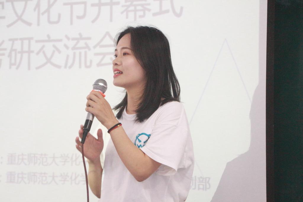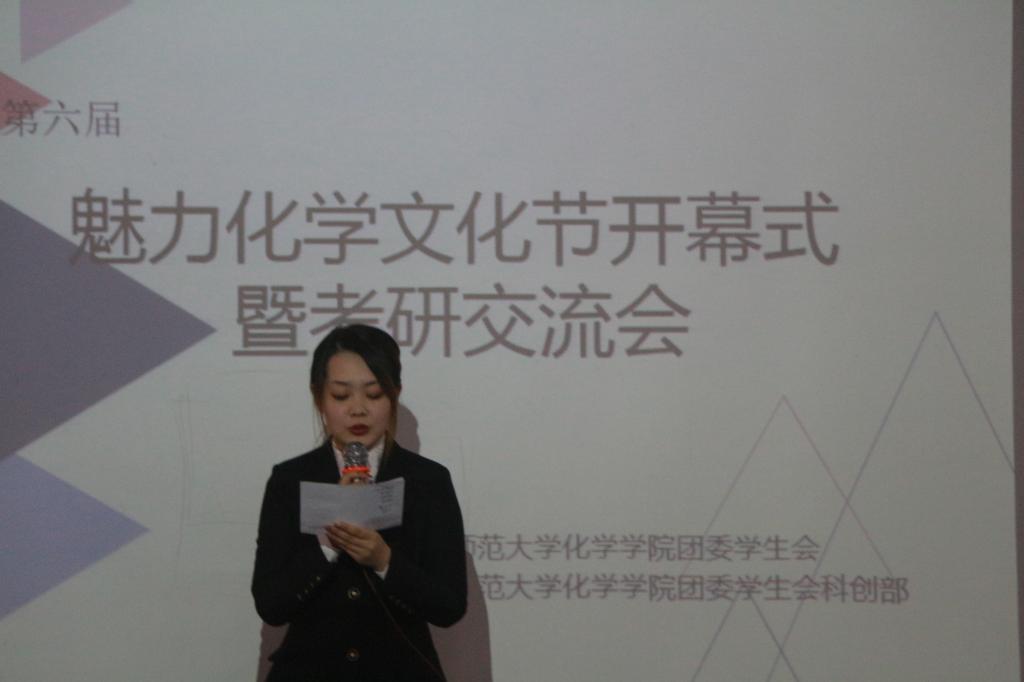 开幕式上,卢副书记对组织参与活动的老师们和各部门学生致以亲切的问候,并宣布太阳成tyc234cc第六届“魅力化学”文化节正式开幕。紧接着是考研交流会。本次邀请到了七位2017级成功上岸的学姐为有考研意向的同学分享考研备考、笔试和面试等的相关经验。首先是张静、李泓宇的分享,她们的报考志愿都是兰州大学,并分享了有关专业课备考方面的独到见解,让同学们对考研准备阶段有所认识;接下来是被南开大学录取的谭鑫,她分享了自己争取一切可能性的艰辛历程;陈雪杉、刘莉志愿于四川大学,她们强调了考研科目中,政治、英语的重要地位,并提醒到要从现在开始积累相关知识;李昭螢分享了她志愿取舍的历程,并且现已被哈尔滨工业大学正式录取;最后是报考西南大学的彭晓格的分享,她告诉同学们“早做好决定,比什么都重要”。