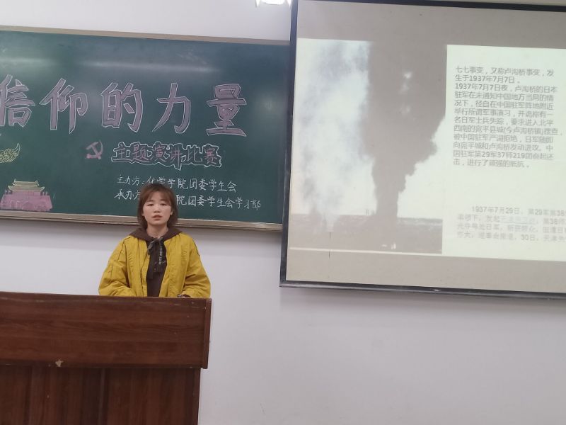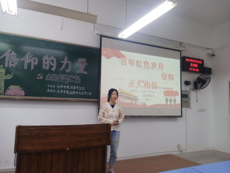 今年正值中国共产党成立100周年,共产党一路走来都离不开信仰的力量。为纪念和传承中国共产党一路以来面对艰难险阻而迎难而上的精神与力量,3月25日下午,由我院团委学生会主办,学习部承办的演讲比赛——“信仰的力量”于弘德楼13101教室举办。本次比赛的评委有主席团主席徐荣蔚、副书记慕雨窈和王鸥。