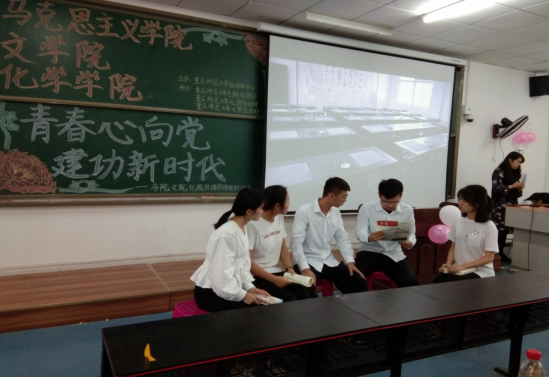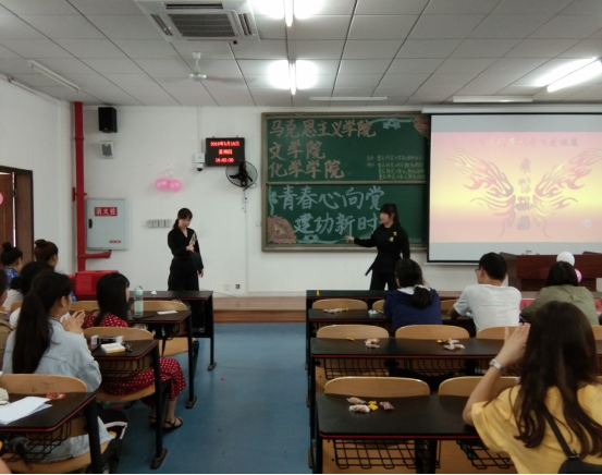 2019年5月16日下午三点半,太阳集团tyc234cc马克思主义学院社团部联合太阳成tyc234cc社团部以及太阳集团tyc234cc文学院社团部于特教楼2409举办以“青春心向党,建功新时代”为主题的团组织活动。此次活动旨在响应习近平总书记的战略号召,为了把最大多数青年紧紧凝聚在党的周围,坚持一心向党的信念,在新时代赓续传承五四精神,奋发有为,与祖国的发展同频共振。