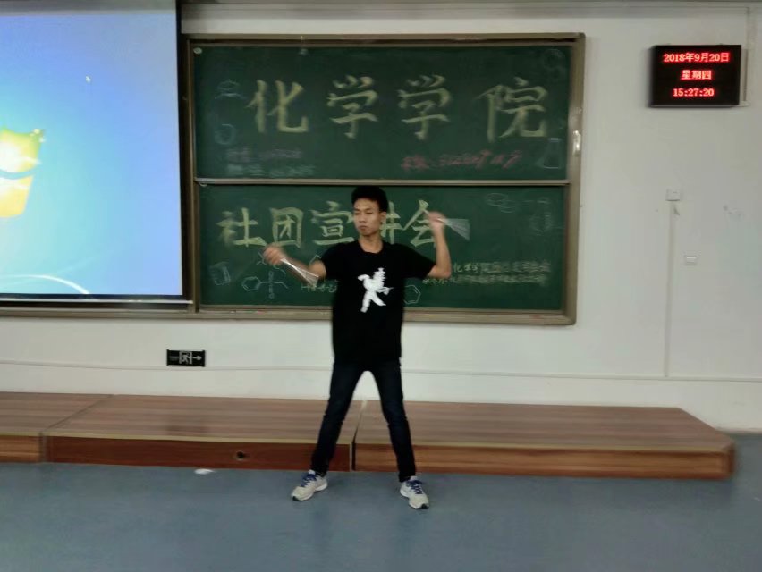 整个社团宣讲由未来教师协会,科普爱好者协会,梦想公益协会飞鹰棍棒者协会,美食天下行协会以及化学协会轮番上阵,各个协会各有千秋。有文化,有武术,有兴趣,有科研,有爱心,可谓能文能武,亦动亦静,丰富多彩,展露风华。活动现场,社团宣讲负责人用认真细致的讲解搭配幽默风趣的ppt来介绍自己的部门。更有甚者,现场展现社团风采,可以说赚足了同学们的目光,现场同学的情绪一路高涨。