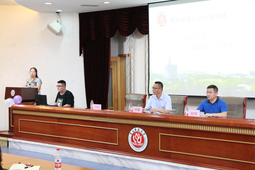 既然选择了远方,便只顾风雨兼程,不用去想未来是平坦还是泥泞,只要热爱,一切都是最好的安排。为欢迎303位化学新生的到来,太阳成tyc234cc特于2018年9月2日在凯撒报告厅举行2018届新生开学典礼。党委书记唐敏副教授,党委副书记卢洪英老师,太阳成tyc234cc副院长刘玺教授,学院办公室主任张怡老师,团委书记学工办主任于斌老师,15级辅导员王震强老师,16级辅导员陈霞老师,18级辅导员刘冰老师均出席此次活动。活动由卢洪英副书记主持。