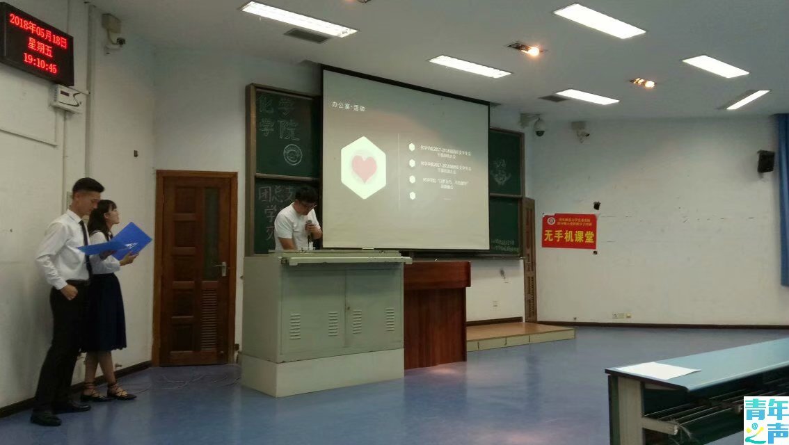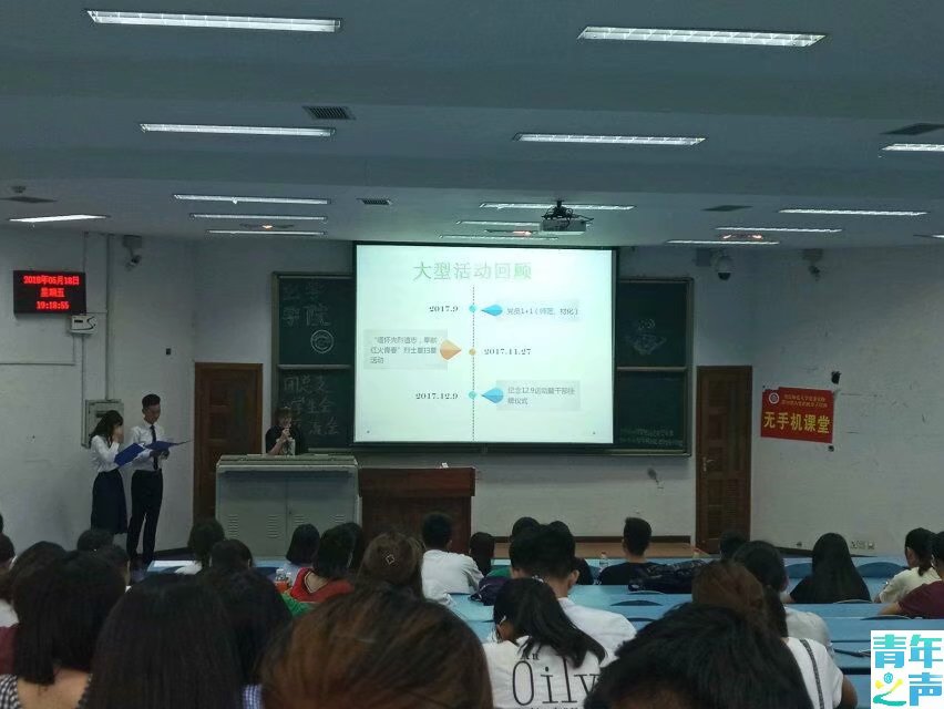 太阳成tyc234cc团总支学生会全体成员在这个大家庭工作了快一年了,在这忙碌的一年里,学生会的工作有许多精彩的瞬间,也存在着遗憾和不足。为使今后团总支学生会的工作开展得更加顺利,2018年5月18日,由太阳成tyc234cc团总支学生会主办,太阳成tyc234cc团总支学生会办公室承办的“2017—2018届团总支学生会交流会”于晚上7时在弘德楼15205举办,李文、宋龙吟主持。出席此次交流会的嘉宾有团学会主席唐喜、办公室主任秦佳莹、组织部部长蒋皓、实践部部长周莆、体育部部长葛琦、宣传部部长耿立珊。