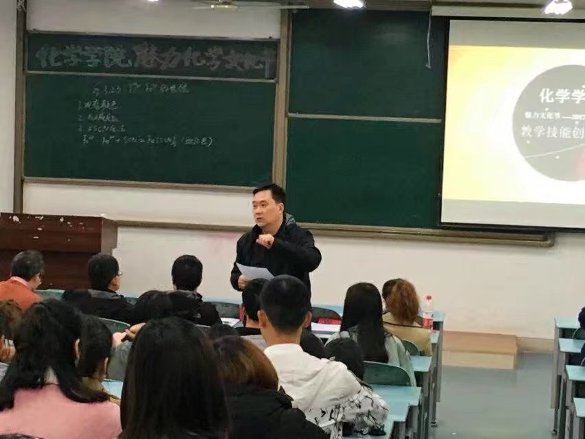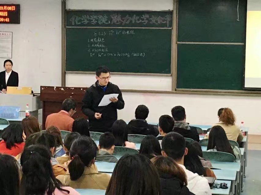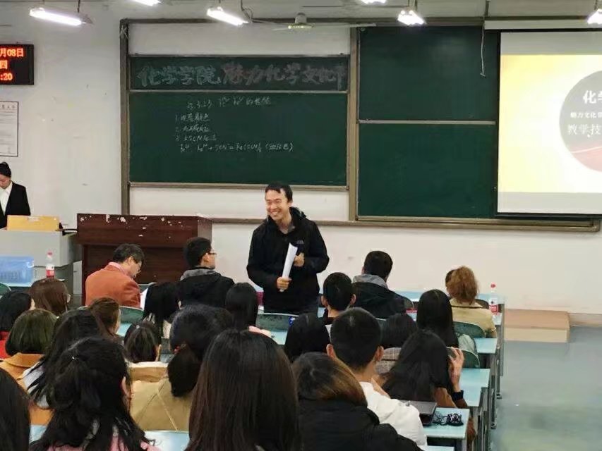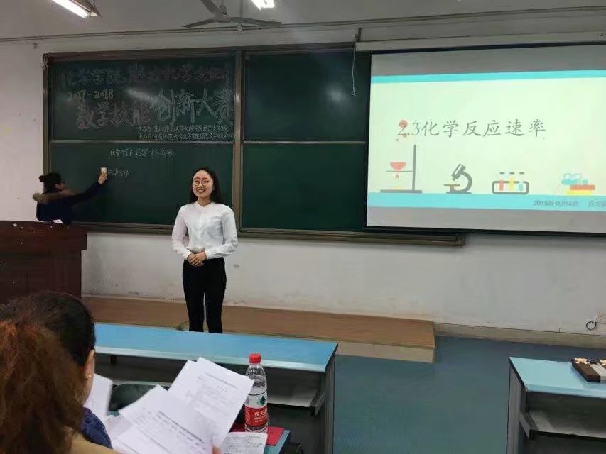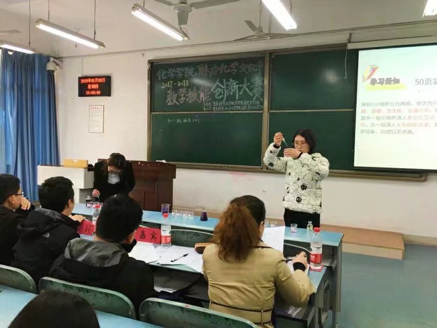 为了进一步增强太阳成tyc234cc师范生实践应用能力和创新能力,提升师范生的综合素养,彰显师范特色,强化学生教学技能,同时响应化院第三届"魅力化学文化节",在3月8日下午弘德楼15102,化院针对2015级的同学开展了“教师技能创新大赛”。参赛者有郝静、尹巧、王春华等人,到来的嘉宾有杜小旺老师、许应华老师、曹书梅老师、胡晋川老师以及周琦老师。