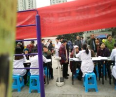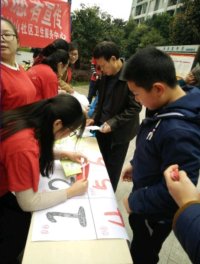 活动开始,志愿者将重医附属医院和香山社区医院老师们关于防核知识的专业培训用以防核宣传。志愿者在社区进行宣传,为老人、孩子详细讲解,并建议他们在定点免费检查,并准备游戏知识问答九宫格、防核连连看、抵御结核大作战、肺部保卫战。各个项目进行得有条不紊,现场互动频繁,气氛热烈。社区里,许多中老年人积极询问、了解防核知识,主动配合检查。十一时三十分,活动结束,志愿者与老人、孩子合影留念。