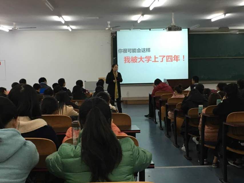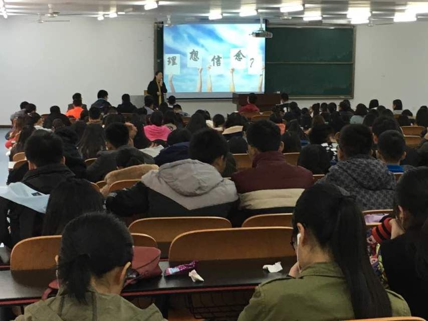 下午十六点三十分讲座正式开始。卢洪英老师首先以于沙,雨果的名言作为开场,引入理想这个主题。接着连续几个问题更是直指人心,让同学们不禁反省自己现在的大学生活。卢洪英老师谈完了理想紧接着又通过给同学们讲了一个小故事,来提醒同学们要孝顺父母。又以一个故事来告诫同学们不要拖延。卢洪英老师的言语亲切和蔼,语言幽默风趣,参与讲座的同学都听得津津有味。最后卢洪英老师祝愿同学们度过一个值得骄傲的大学四年生活。