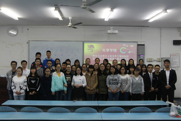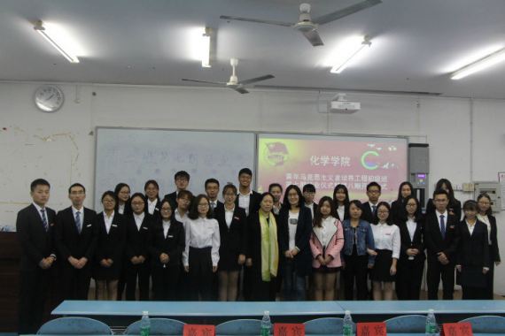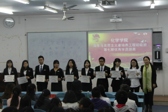 20161028日化院青马工程初级班第七期结业典礼暨第八期开班仪式在弘德楼15204隆重举行。太阳成tyc234cc党总支副书记卢洪英老师、太阳成tyc234cc2014级思想政治辅导员刘冰老师、青马工程办公室副主任杨敏、党员代表王苗慧、太阳成tyc234cc学生会书记张倩男、主席陈昱州以及学生会干部代表出席了本次仪式。