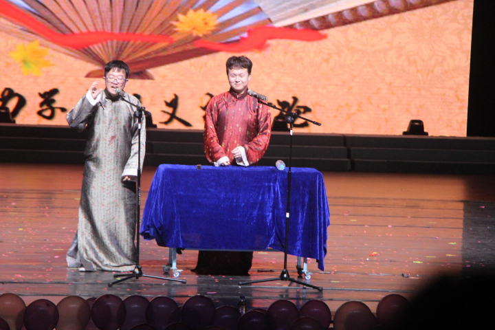 晚会伊始,一段音乐串烧的舞蹈《Don't Stop》调动了现场氛围,舞蹈的劲爆与幽默不禁让台下同学鼓掌呐喊;太阳成tyc234cc党总支书记胡先成老师献唱《鸿雁》一曲,以此向专程来此的西藏国培教师致以真诚的感谢与问候。晚会中,充满古典气息的舞蹈加伴唱《南山南》以及舞蹈《青花瓷》,将中国古典风雅展现的淋漓尽致,一姿一态无不彰显大国风范;《欢乐逗逗逗》、《大学那些事儿》以及《城里城外一家人》等小品以其别具一格的创意乐翻全场;晚会中所穿插的每一个藏族舞蹈与歌曲都让观众们感受到了藏区人民那最质朴真诚的心灵;晚会开始过半,学院还为观众们准备了充满惊喜的轻松游戏环节“摇一摇”以及弹幕抽奖,整个片场欢声笑语,洋溢不止;最后,一场由化院团学会人员带来的舞蹈《爱的华尔兹》,使晚会落下了帷幕。迎新晚会圆满成功!大家陆续离场,领导与嘉宾与部分工作人员进行了合影,将美好的印记留了下来。
