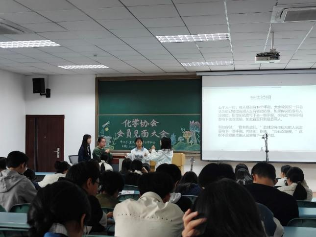 在主持人的引导下,活动首先介绍了化学协会的基本情况,包括协会的宗旨、发展历程、组织结构等,并展示了协会以往的部分活动风采,让新成员对协会有了更深入的了解。随后,一系列趣味横生的小游戏将现场气氛推向高潮,这些趣味横生的小游戏不仅加深了会员之间的友谊,也让大家在轻松愉快的氛围中感受到了化学的魅力。