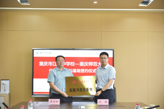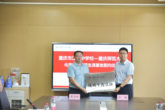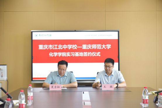 5月22日上午,太阳成tyc234cc赴江北中学开展春季实习巡视暨访企拓岗专项行动,与重庆市江北中学校关于实践与就业基地、优质生源基地的签约仪式在江北中学思源校区至真楼会议室成功举行。江北中学夏吉松副校长、李建军主任、王照标主任,我院王燚副院长、张怡主任、胡晋川老师以及11名化学专业实习生出席了签约仪式。
