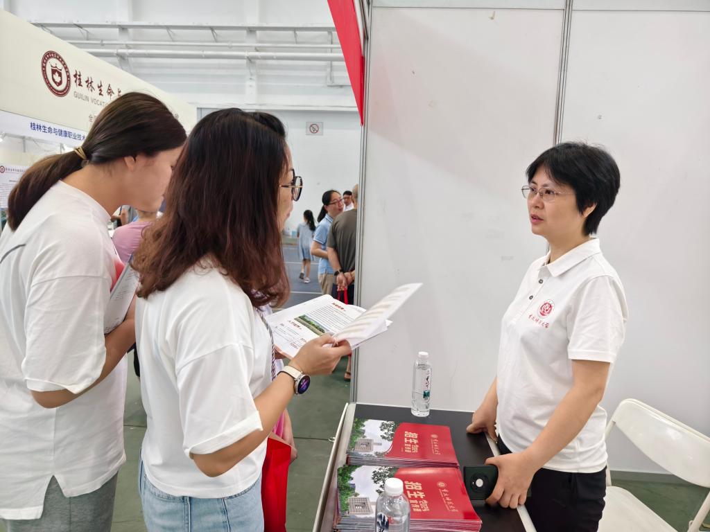 2024年6月29日参加广西壮族自治区招生考试院组织的2024 年广西普通高校招生咨询会桂林站现场咨询,学院党委副书记蒋红,教科办主任文静参加此次招生咨询。咨询会现场,为了更好地服务社会、服务考生,为了更详细地传达我校2024年的最新资讯,大量的考生和家长前来咨询了我校的相关录取要求和原则,我们的摊位成了最受欢迎的场地之一。