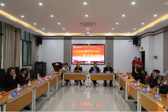 座谈会上,孟小军副校长代表学校向我院77级校友返校表示热烈欢迎向校友们介绍了学校近年来取得的成就和学校事业发展情况,同时对学校校友工作开展以及各地校友办事处建设情况进行了详细说明。牟萍主任介绍了学校对校友走访、信息收集以及校友返校手续办理等情况。校友田一平代表化学系发表对母校的情义和对老师的感恩并向学校学院赠送题为“惟宏隆德,情系教育”的化学系物理系77级毕业四十周年纪念牌。