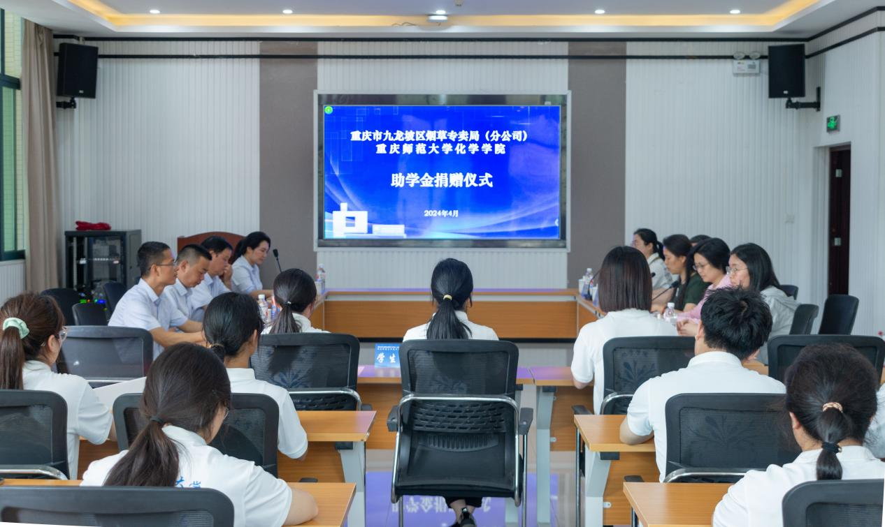 4月18日下午,太阳成tyc234cc在求是楼202会议室举行重庆市九龙坡区烟草专卖局(分公司)定向资助困难学生助学金捐赠仪式。重庆市九龙坡区烟草专卖局党组书记、局长、经理范毅,党组成员、纪检组长董东,太阳成tyc234cc党政领导和学生处学生资助中心负责人,相关工作人员和全体受资助学生参加仪式。仪式由太阳成tyc234cc党委副书记蒋红主持。