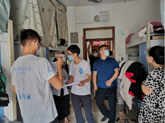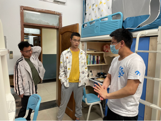 3月16日,学院党委书记卢洪英,副院长刘玺,党委副书记蒋红,副院长王燚以及全体辅导员、班主任、研究生班主任走访学生寝室,提醒同学们疫情之下不能大意,一定要遵守学校学院关于防疫的各项规定,做好个人防护;同时,学院线上教学工作顺利开展,在寝室上网课,也必须对自己严格要求,确保学习的顺利进行;针对同学们尤其是毕业年级遇到关于就业、考研以及毕业的各种问题,学院领导老师们都给予一一解答。