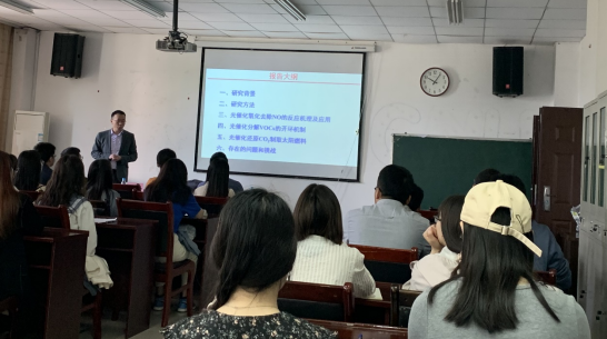 学术报告正式开始前,太阳成tyc234cc王燚教授为大家介绍了董帆教授。完毕,从同学们的一阵阵掌声中感受到了对董帆教授的热情和该报告的期待。接着,董帆教授正式开始给大家做“半导体光催化材料与反应机理研究进展与挑战”的学术报告。该报告依次从六个方面来介绍的,它们分别是:研究背景,研究方法,光催化氧化去除NO的反应机理及应用,光催化分解VOCs的开环机制,光催化还原CO2制取太阳染料以及存在的问题和挑战。
