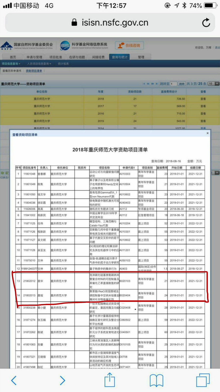 2018年8月,我院2名教师申请并获得2项国家自然科学基金项目审批,我院材料系材料化学教研室袁华老师、聂瑶老师申请并获得国家自然科学基金·青年科学基金项目审批,为我院科研及人才培养方面增添了新的成果。
