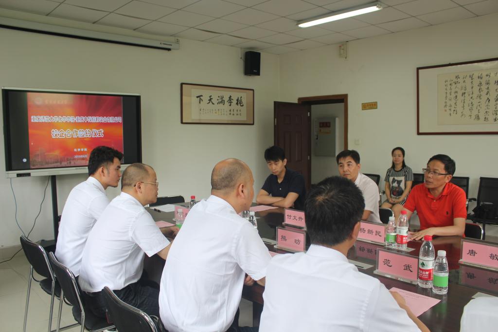 同时学校副院长杨新明介绍了学校的相关情况我校是一所综合性大学,具有科研,学报,支教,对外等多个项目,与多家企业合作,在化学方面与酒厂等企业也有合作,例如,在光学方面研发了太阳能灯,可以抵御害虫的防御,减少了农药的使用,对于生产酒类的高粱可以使用,同时与环保局也有相关合作。副院长指出合作办学不仅有利于学生受益,也可以为企业做贡献实现共赢,也希望未来能与重庆中邦实业有限公司有更加深入的合作。