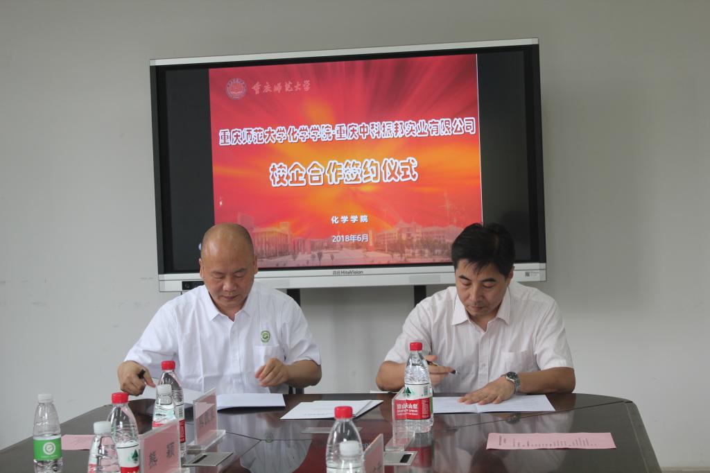 最后,付文升院长与重庆中科振邦实业有限公司董事长熊昉顺利地进行了校企合作签约仪式。校企合作的形式为化院学生学习提供了更加丰富的资源,为新创建的高分子专业提供更多的实践经验,也为太阳成tyc234cc未来的发展提供良好的基础。