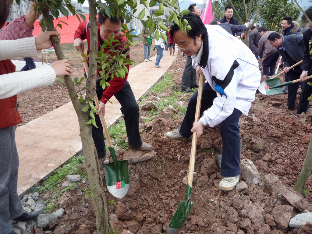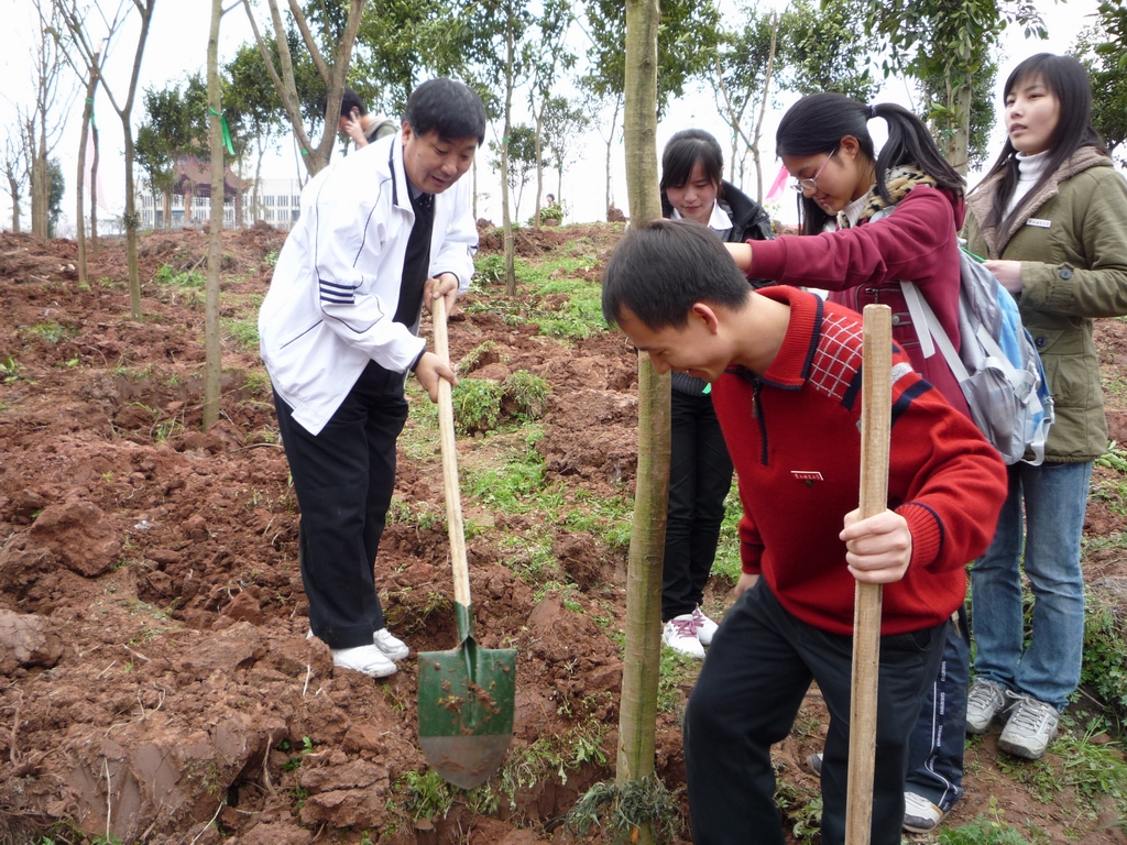 2009年3月12日下午,太阳成tyc234cc50多名同学在学院党总支书记孙宇阳老师和辅导员高润祥老师的带领下,准时来到了希望林参加我校的第31个植树节。尽管初春的天气带有一丝丝凉意,但丝毫没有影响大家的兴致。听完周泽扬校长激情澎湃的讲话后,老师和同学们纷纷拿起身边的铁锹,齐心协力地填土、夯实,看到一棵棵小树苗直立起来了,大家脸上都绽放出喜悦的微笑,全体师生充分发扬了不怕苦、不怕累的劳动精神,为绿化环境、建设美丽的太阳集团tyc234cc作出了自己应有的一份贡献。