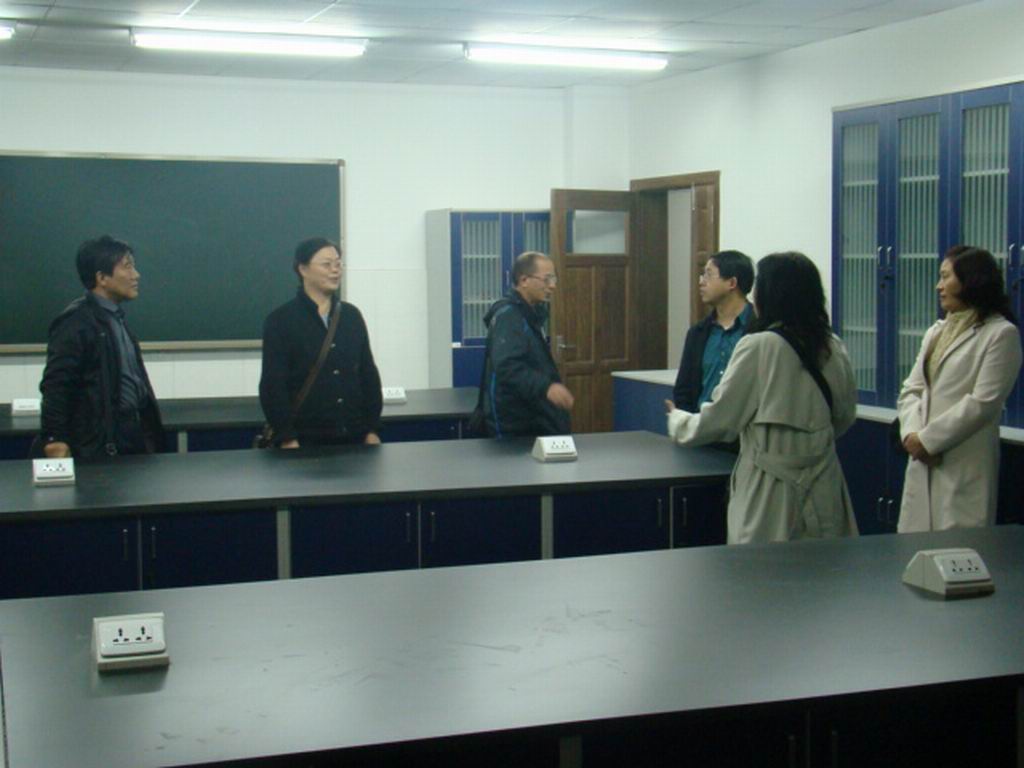 (上图为湖北第二师范学院教务处、化学与生物系以及物理系老师们参观我院科学教育实验室)
