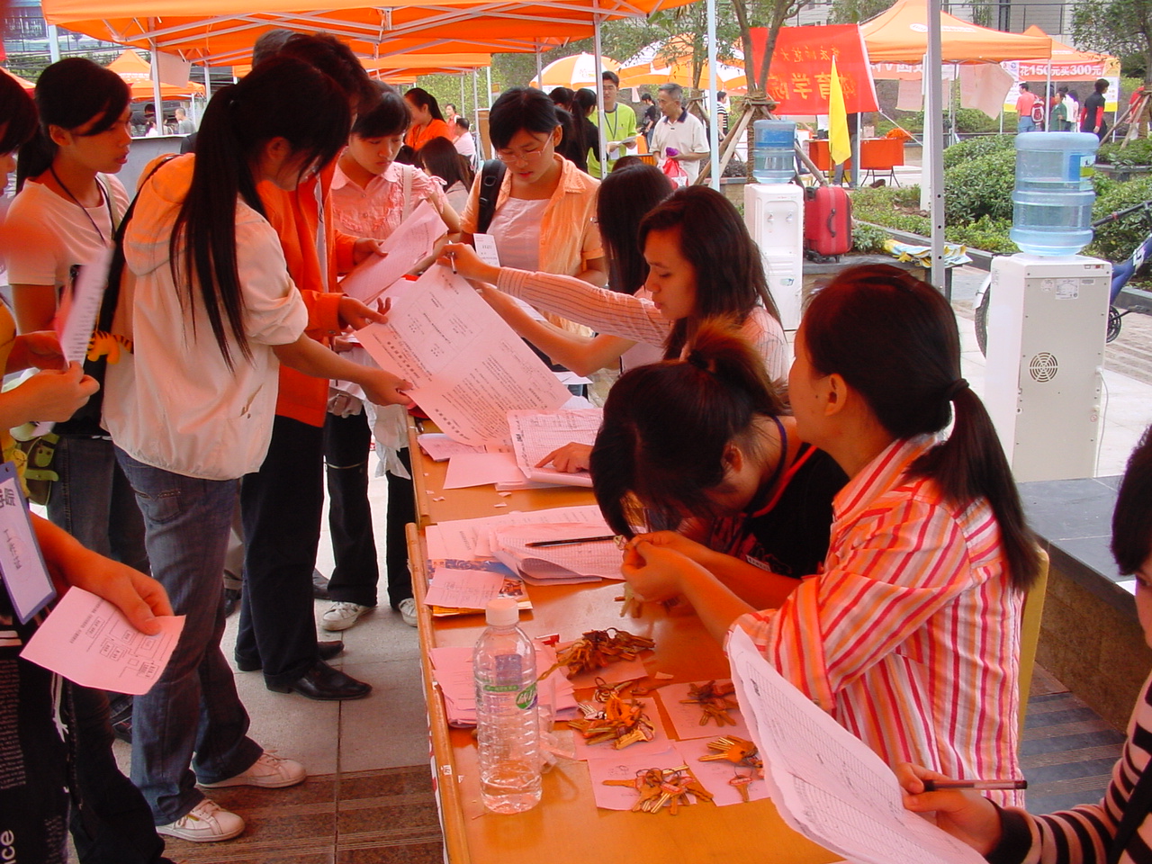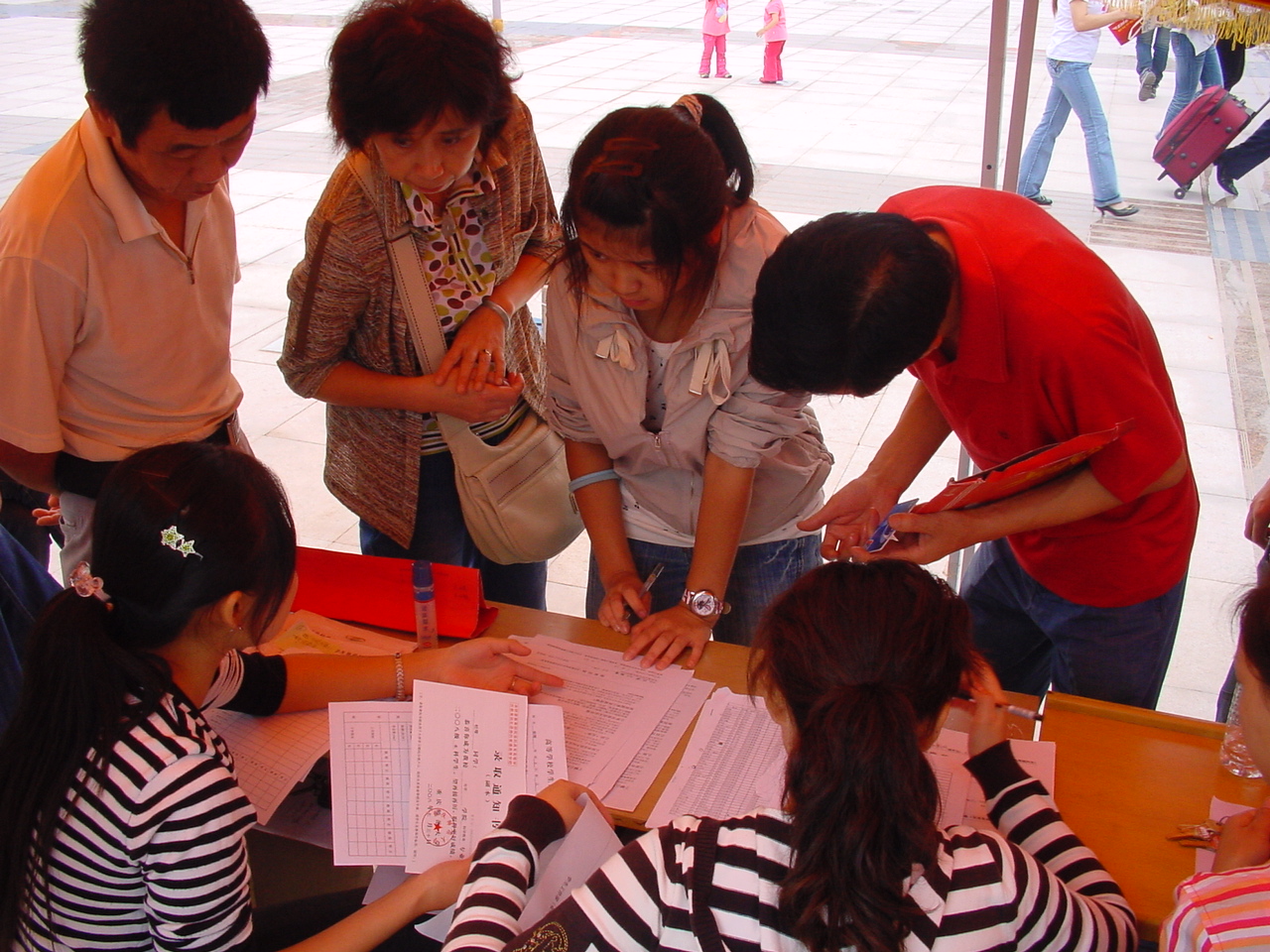 今天,是太阳集团tyc234cc“迎新”工作的第一天,太阳成tyc234cc的工作在值班老师的指导下有条不紊地开展。不料天公不作美,下起了倾盆大雨,这为我们的“迎新”工作增加了不少难度,也给新同学和家长带来了诸多不便。与往年“迎新”工作不一样的地方是,今年,我们在新生接待处专门开设了一个家长休息区,在此,家长们除了可以遮风挡雨和歇息外,还可以通过海报等方式了解到学校、学院的概况以及学科专业、毕业后的就业方向等信息;在休息区,专门摆有凳子、矿泉水提供给家长们使用。同时,家长们还可以和“迎新”的同学交流以进一步了解学校和学院的历史。我们在“迎新”点开设休息区的举动大受家长们欢迎,家长们对我们学院的这种备至的关怀给予了很高的评价,兄弟院系也纷纷效仿。