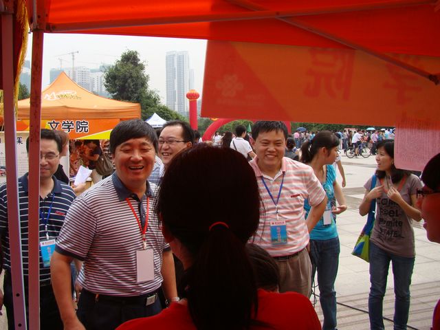 上午,学校党委书记邓卓明和校长周泽扬视察“迎新”情况。学院党总支副书记李荣老师一直在现场指导“迎新”工作,为家长们耐心的解答关于生源地贷款、户口迁移等问题。
