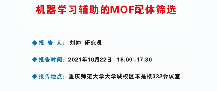 学术报告预告:刘冲(四川大学)——机器学习辅助的MOF配体筛选