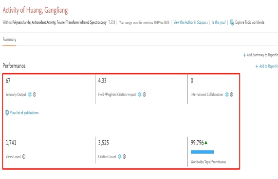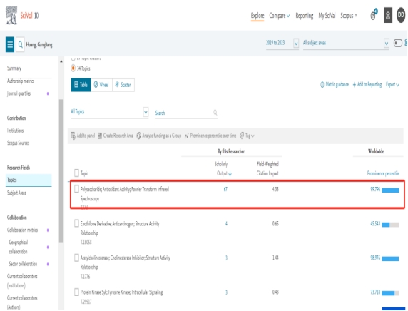 在最近5年主要在多糖领域进行研究,在这个研究方向共发表国际可见论文67篇。链接https://www.scival.com/overview/topics/table?uri=Customer/203039/Researcher/17115679